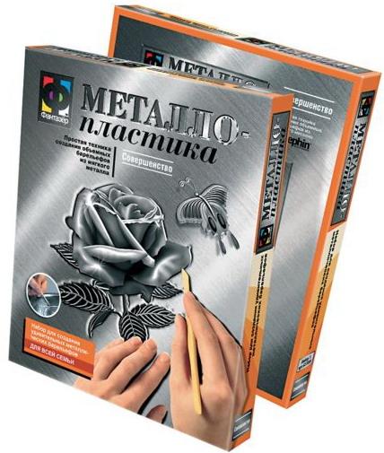 Металлопластика - это древняя техника создания рельефных изображений, которая с давних времен используется для украшения мебели, изготовления различных элементов декора или в качестве самостоятельного произведения искусства. Рельефные изображение получают на тонких листах металла путем выдавливания контура рисунка специальным инструментом. Набор <<Металлопластика>> позволяет каждому желающему освоить технику, которой когда-то владели лишь искусные мастера.