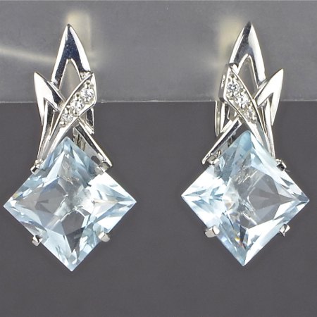 Такие серьги впору носить самой Снежной Королеве! Продолговатые, устремляющиеся ввысь серебряные завитки, украшенные гладкой полировкой и прелестными мелкими фианитами, напоминают роскошные кристаллы льда, ниже этой ледяной красоты располагаются крупные вставки из натурального голубого топаза! В этих серьгах использован топаз без всякой химической обработки – вот такой льдистый, невесомый цвет имеет от природы этот чудесный, любимый вами камень! Квадратные каменья имеют красивую огранку, которая называется «принцесса». Они сверкают и переливаются, словно ледяные, и свет причудливо преломляется в многочисленных гранях!