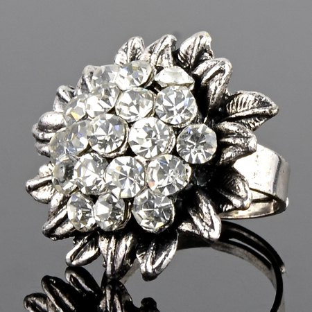 Кольцо со стразами, металл - ювелирный сплав. Безразмерное. Диаметр украшения 3 см.