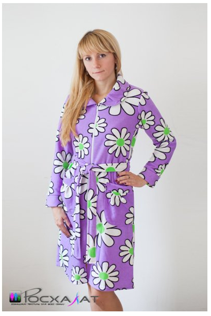 Описание: Великолепный халат длинной до колен приталенного силуэта с застёжкой на молнию. Оригинальный воротничок идеально сочетается с формой накладных кармашков спереди, длина рукава 3/4. Изделие дополнено поясом. Отличный вариант для домашнего гардероба.