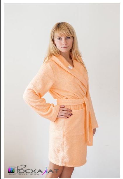 Описание: Мягкий банный халатик выполненный из натуральной приятной к телу махры. Изделие приталенного силуэта за счет пояса в тон, с капюшоном и слегка расклешенными к низу рукавами. Длина изделия до колен, с двух сторон два удобных накладных кармана.