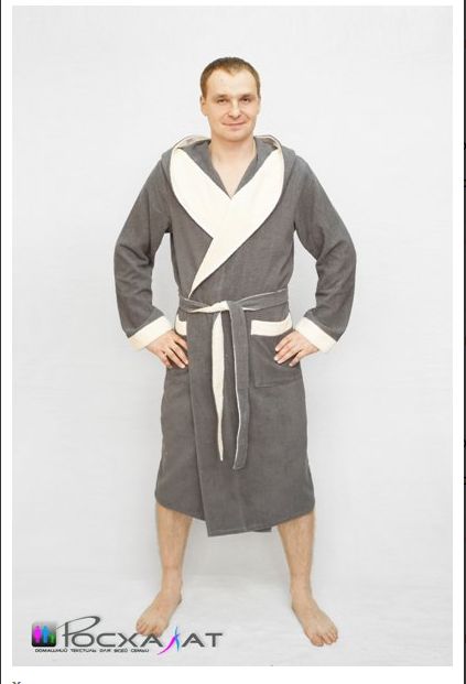 Описание: махровый мужской комбинированный халат с капюшоном. Возможно комбинирование различных цветов.