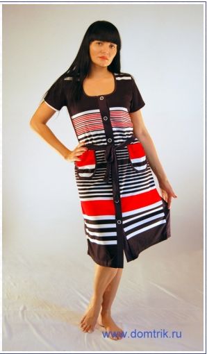 Халат женский на пуговицах с планкой, накладные карманы и горловина халата отделаны однотонной окантовкой.Спинка халата однотонная.