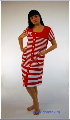 Халат женский из интерлока на пуговицах с печатью на кокетке, короткий рукав, накладные карманы.