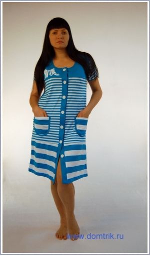 Халат женский из интерлока на пуговицах с печатью на кокетке, короткий рукав, накладные карманы.