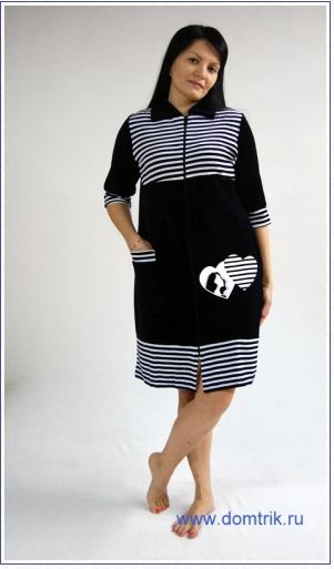 Халат женский велюровый на молнии с воротником , отрезная кокетка, печать на полочке.