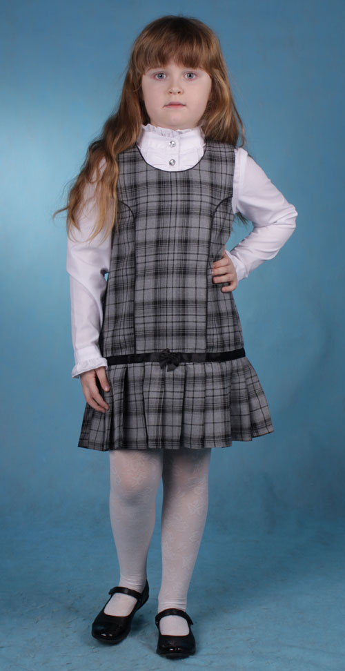 Описание: Школьный сарафан в клетку из великолепной турецкой ткани - поливискозы. Ткань очень мягкая и нетяжелая. Сзади длинная молния для более легкого одевания и снимания сарафана. Внизу сарафана складка обработанная атласной лентой с изумительным бантиком.