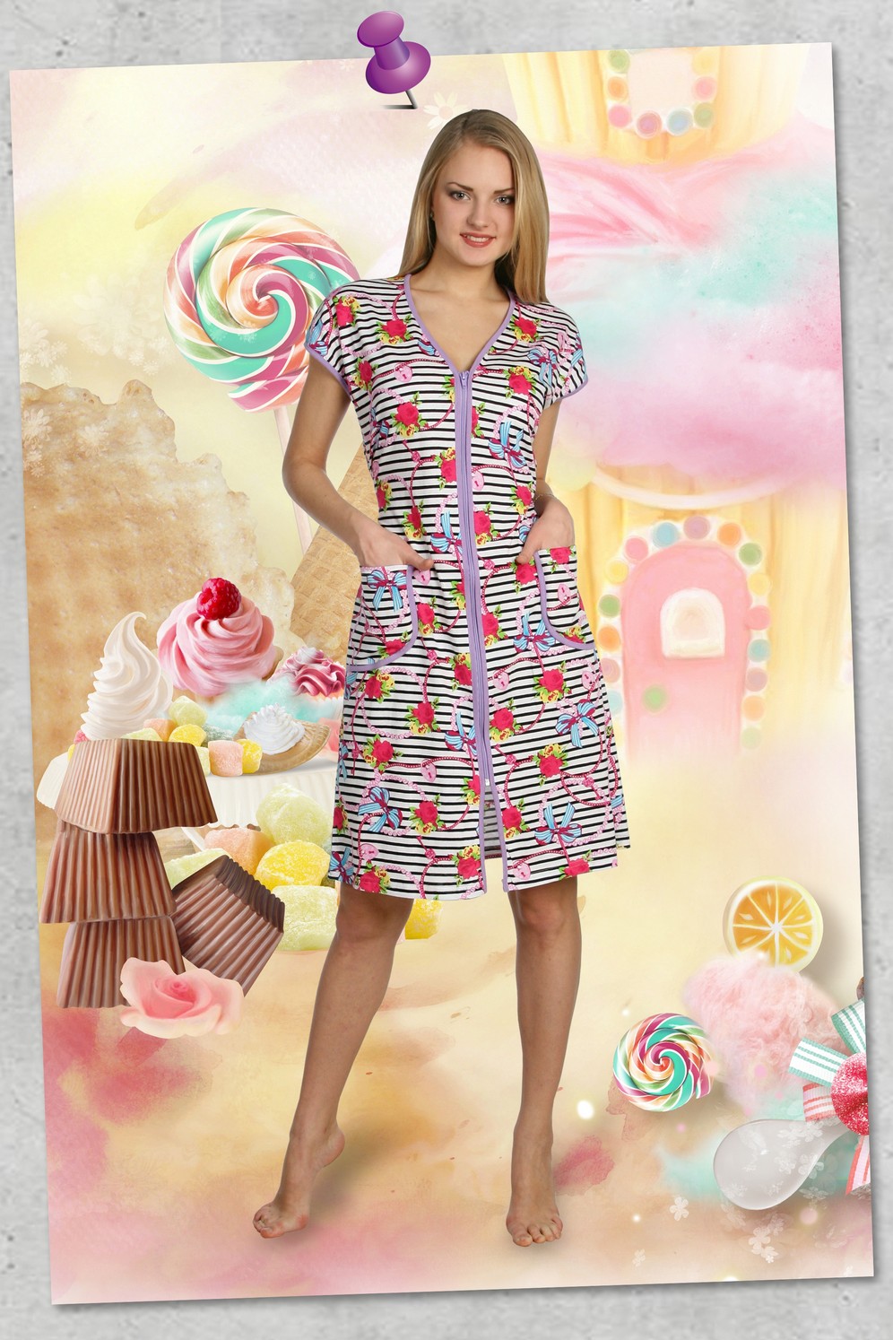 Халат женский,застежка молния, спущенный рукав, отделка окантовка в цвет.