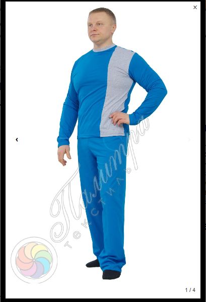 Стильный мужской домашний костюм, состоящий из контрастной толстовки с длинными рукавами и брюк с декоративной отстрочкой на карманах. Костюм также может использоваться как одежда для сна(пижама) или как удобный летний костюм.