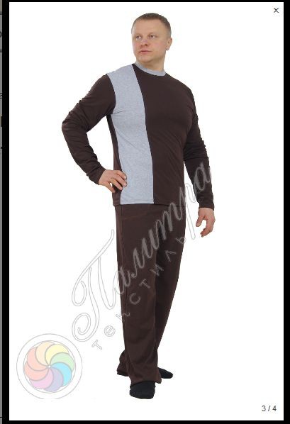 Стильный мужской домашний костюм, состоящий из контрастной толстовки с длинными рукавами и брюк с декоративной отстрочкой на карманах. Костюм также может использоваться как одежда для сна(пижама) или как удобный летний костюм.