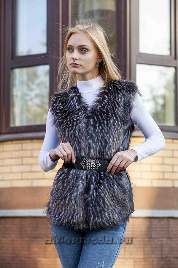 Жилет из искусственного меха высокого качества, приятного на ощупь. Боковинки - из кожи искусственной.