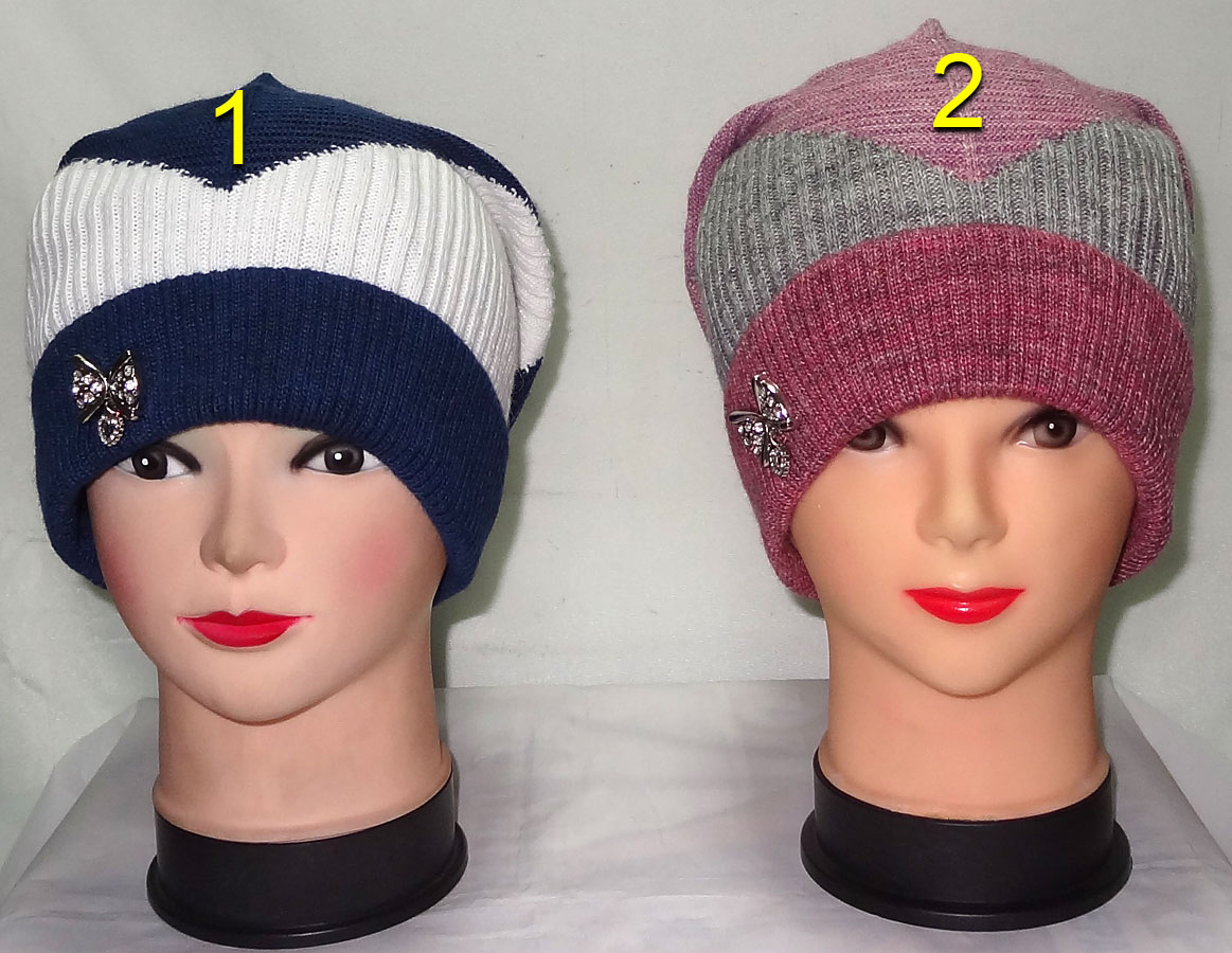 Зимняя шапка на девочку с брошкой Бабочка и помпоном (имитация натурального меха).