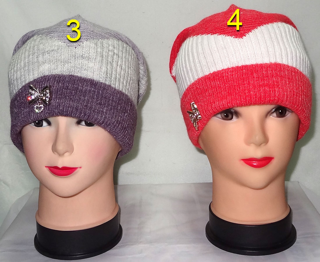 Зимняя шапка на девочку с брошкой Бабочка и помпоном (имитация натурального меха).