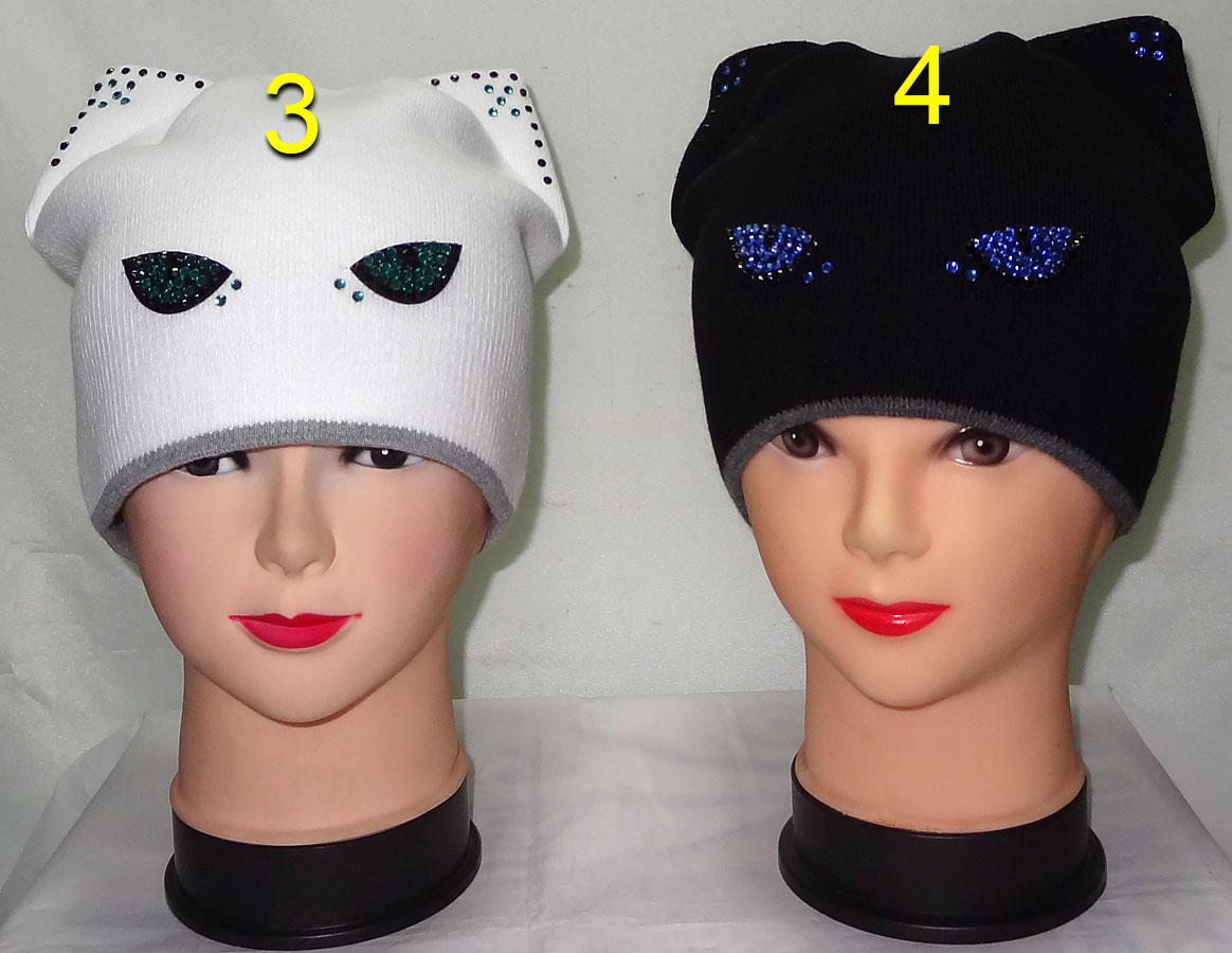 Зимняя шапка на девочку со стразами в виде Глазок.