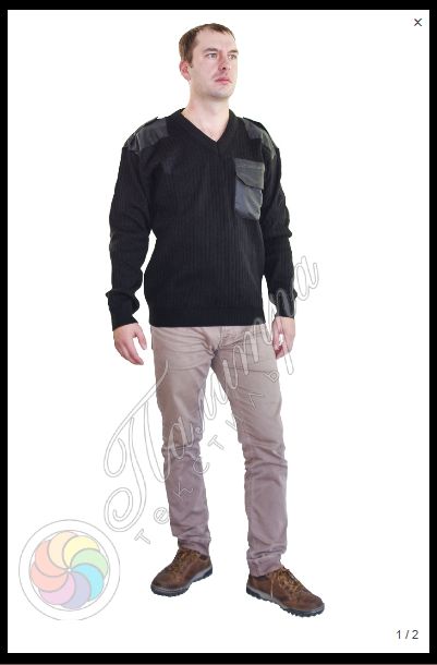 Практичный армейский свитер. Для защиты от протирания на изделие нашиты детали: наплечники, погоны и налокотники.