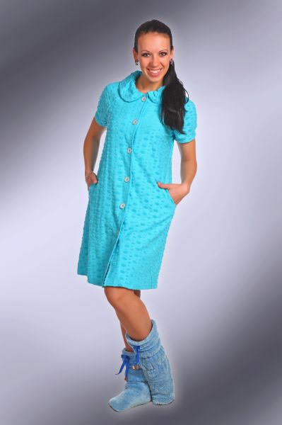 Оптимальная длина до колена и круглый отложной воротник с интересными защипами