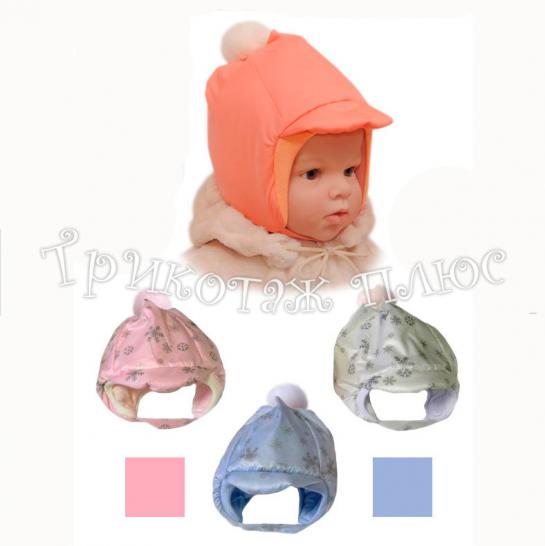 Шапочка из плащевки с помпоном из декоративного меха,