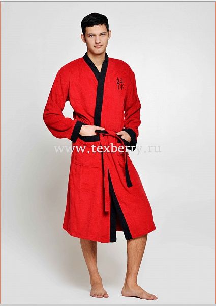 Халат мужской кимоно махровый удлиненный с вышивкой.