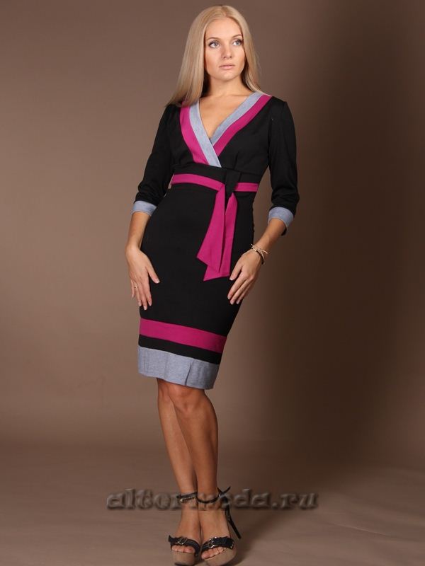Платье трикотажное серое фуксия-черное