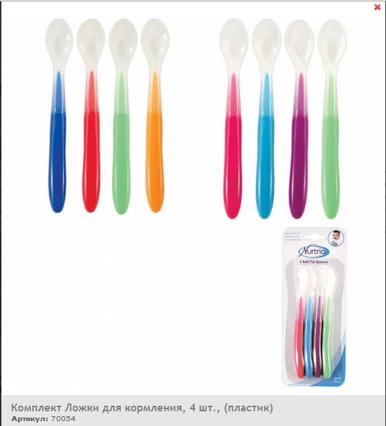 Набор из четырёх разноцветных ложечек для малыша. Не травмируют нежные дёсна ребёнка. Имеют удобную для держания ручку. Изготовлены из безопасного пластика, который не содержит бисфенол A.