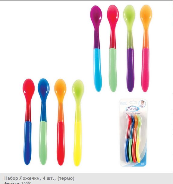 Комплект безопасных термо-ложечек от Nurtria. Разноцветные ложечки меняют свой цвет на белый, предупреждая, что температура еды слишком высокая (приблизительно 38 С). Для проверки необходимо поместить их в пищу на 15 секунд. Длина ложечек (17 см.) позволяет использовать их и помещать даже в высокие стаканчики и чашки. Рукоятки имеют удобную для держания форму, а яркие цвета привлекают внимание ребенка. Представлены цветовые комбинации для мальчика и девочки.