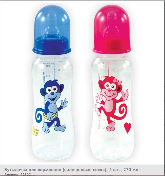 Бутылочка для кормления изготовлена из термостойкого небьющегося пластика, который не вступает в химическую реакцию с молоком и не выделяет вредных веществ при стерилизации. НЕ СОДЕРЖИТ бисфенол А (химическое соединение, которое приводит к нарушениям в эндокринной системе организма). Бутылочка укомплектована силиконовой соской и имеет два цветовых решения - голубой и розовый.