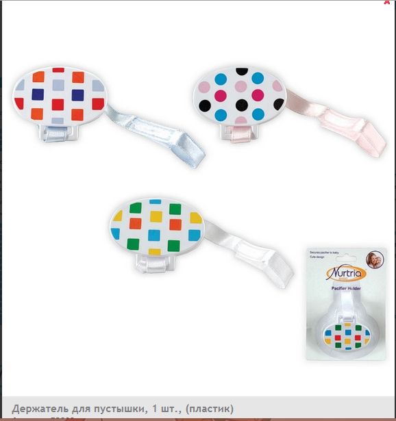 Держатель для пустышки представляет собой пластиковую клипсу с ленточкой и забавным принтом, которая крепит пустышку к одежде ребёнка.Доступен в 3 цветовых вариантах.Внимание: НЕ обвивайте держатель для пустышки вокруг шеи младенца, не оставляйте младенца без присмотра во время использования держателя.