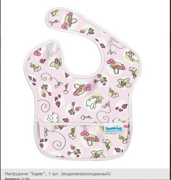 Водонепроницаемый нагрудник от торговой марки Bumkins изготовлен из прочной, но в то же время мягкой ткани. Спереди - удобный карман, в который попадают крошки и разливы. Сзади - застёжка на липучке, позволяющая самостоятельно регулировать размер нагрудника по окружности горла. Нагрудник можно стирать в стиральной машине. Не содержит бисфенола А, ПВХ, фталатов, свинца. Подходит для детей в возрасте от 6 до 24 месяцев.