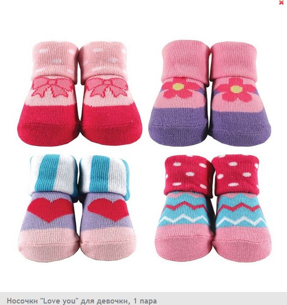 Носочки для девочки в четырёх вариантах дизайна. Хорошо тянутся благодаря добавлению эластичных волокон. Плотно сидят, не сдавливая ножку.