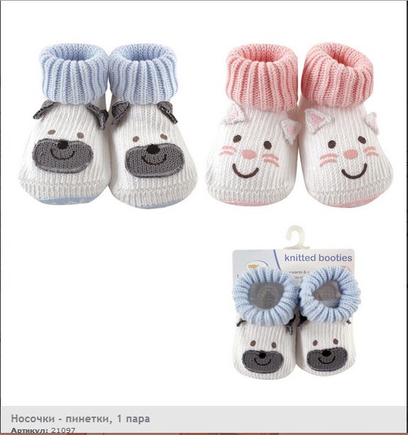 Вязаные носочки-пинетки - великолепный выбор для новорождённых! Изготовлены из хлопчатобумажных волокон, носочки создают уют и комфорт маленьким ножкам. Широкий отворот не сдавливает ножки, но в то же время не теряет форму в течение дня. Весёлые аппликации делают эти носочки просто восхитительными. Нескользящая подошва обеспечивает безопасность.
