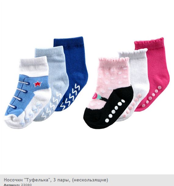 Комплект из трёх пар носочков "Туфелька" с нескользящей подошвой. Привлекает внимание их интересный яркий дизайн, имитирующий туфельки и кеды.