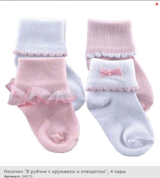 Комплект из четырёх пар носочков для девочки. Нарядные, обворожительные носочки имеют широкий отворот-резинку. Удобно сидят на маленькой ножке.