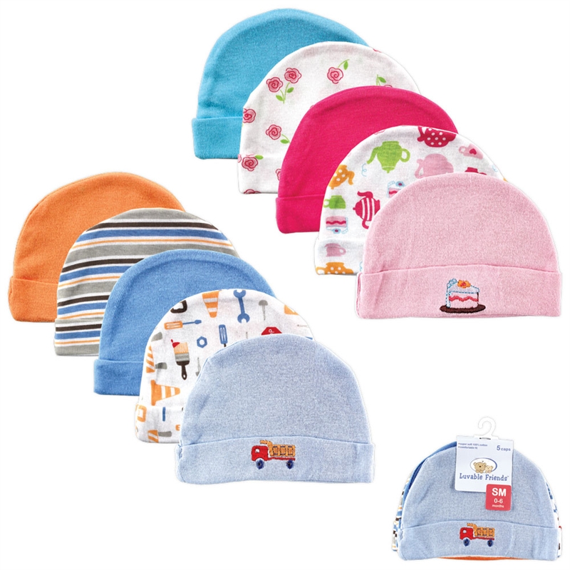 Комплект из пяти разноцветных шапочек для новорожденных от Luvable Friends. Идеально подходят для ежедневного использования. Изготовлены из 100% хлопка, представлены модели для мальчика и девочки. Для малышей в возрасте до 6 месяцев.