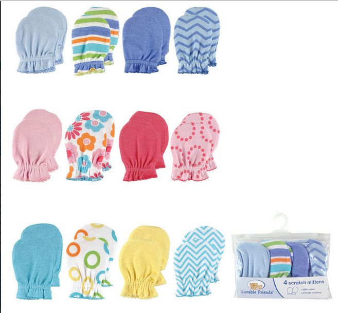Комплект из четырёх пар рукавичек-антицарапок для новорождённых. Антицарапки согревают ручки малыша, а также предотвращают царапание. Изготовлены из натурального хлопчатобумажного трикотажа.
