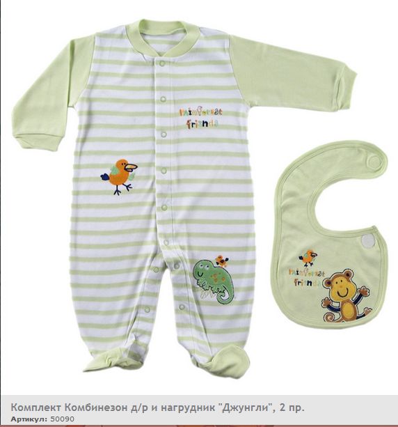 В комплект из коллекции "Джунгли" для мальчика входят: комбинезон с длинными рукавами и нагрудник. Кнопочная застёжка по всей длине комбинезона позволяет с лёгкостью переодевать малыша. Нагрудник фиксируется на липучку.Универсальная и очень практичная одежда для новорождённого, идеальна как для дома, так и для прогулок.
