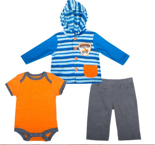 Комплект из трёх предметов для малышей от бренда Bon Bebe: жакет с капюшоном, боди с коротким рукавом и штанишки. Жакет из мягкого флиса застёгивается на пуговицы по всей длине, спереди - карман и декоративная аппликация. Тёплые флисовые штанишки прямого кроя удобны при носке, не сковывают движения. Боди из натурального хлопка с "самораскрывающимися плечиками" - традиционная одежда для новорождённых. Комплект прекрасно подходит для прогулок, а также для носки в помещении в прохладное время.