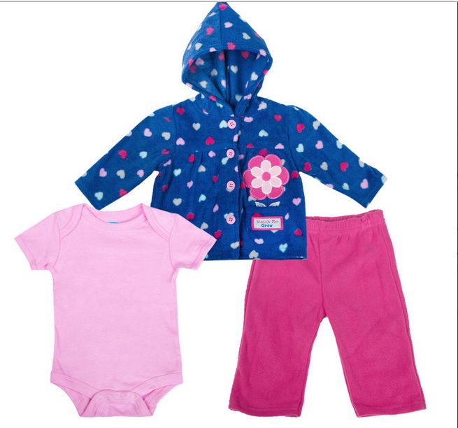Комплект из трёх предметов для новорождённой от бренда Bon Bebe: жакет с капюшоном, боди с коротким рукавом и штанишки. Жакет из мягкого флиса застёгивается на пуговицы по всей длине, спереди - карман и декоративная аппликация. Тёплые флисовые штанишки прямого кроя удобны при носке, не сковывают движения. Боди из натурального хлопка с "самораскрывающимися плечиками" - традиционная одежда для новорождённых. Комплект прекрасно подходит для прогулок, а также для носки в помещении в прохладное время.