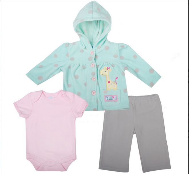 Комплект из трёх предметов для новорождённой от бренда Bon Bebe: жакет с капюшоном, боди с коротким рукавом и штанишки. Жакет из мягкого флиса застёгивается на пуговицы по всей длине, спереди - карман и декоративная аппликация. Тёплые флисовые штанишки прямого кроя удобны при носке, не сковывают движения. Боди из натурального хлопка с "самораскрывающимися" плечиками - традиционная одежда для новорождённых. Комплект прекрасно подходит для прогулок, а также для носки в помещении в прохладное время.