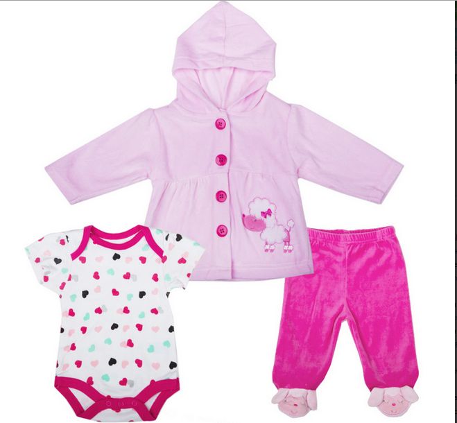 Комплект из трёх предметов для новорождённой от бренда Bon Bebe: жакет с капюшоном, боди с коротким рукавом и ползунки. Жакет и ползунки изготовлены из мягкого бархатистого велюра. Жакет застёгивается на пуговицы по всей длине, спереди - декоративная аппликация. Ползунки имеют удобный крой, декорированы вышивкой и вшивными "ушками". Боди из натурального хлопка с "самораскрывающимися" плечиками - традиционная одежда для новорождённых. Комплект прекрасно подходит для прогулок, а также для носки в помещении в прохладное время.