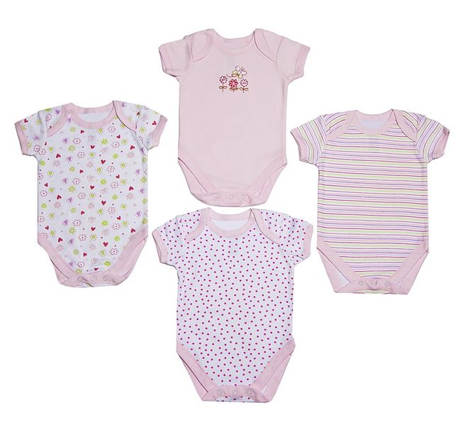 Комплект из четырёх боди с коротким рукавом, для девочки. Боди - универсальная одежда для новорождённого. Удобные и практичные, боди могут использоваться как в сочетании с другими видами одежды, так и как самостоятельный предмет гардероба.