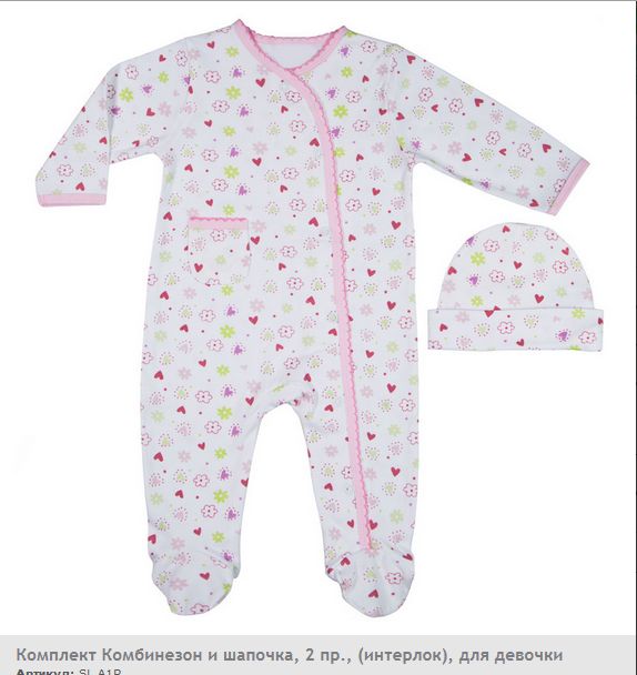 Комплект: комбинезон и шапочка. Комплект выполнен в пастельных тонах, декорирован милым принтом и тесьмой. Комбинезон застёгивается на кнопки, имеет великолепный крой, спереди - кармашек. Интерлок - мягкий хлопчатобумажный материал, который не скатывается при стирке, не деформируется, имеет очень приятную для тела трикотажную фактуру.