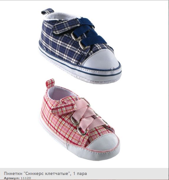 Симпатичные пинетки, стилизованные под кеды с интересной клетчатой отделкой. Удобная застёжка, мягкие, не сдавливающие ножку материалы делают модель практичной и популярной. Антискользящая подошва.