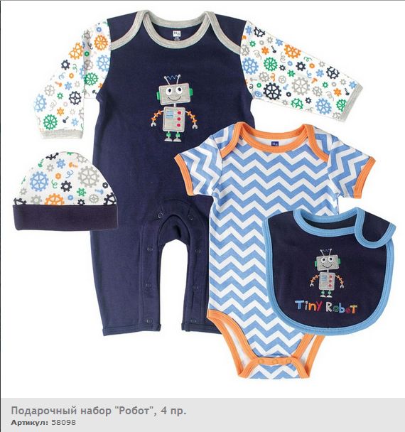 Подарочный набор "Робот" для новорождённого от торговой марки Hudson Baby: боди с коротким рукавом, комбинезон без следков, шапочка, нагрудник. Все предметы изготовлены из мягкого и приятного на ощупь хлопчатобумажного трикотажа. Боди и комбинезон отличаются особым кроем горловины - "самораскрывающиеся плечики" - которые позволяют с лёгкостью переодевать малыша. Комплект привлекает внимание за счёт стильного оформления. Без сомнения, он станет самым любимым в гардеробе новорождённого.