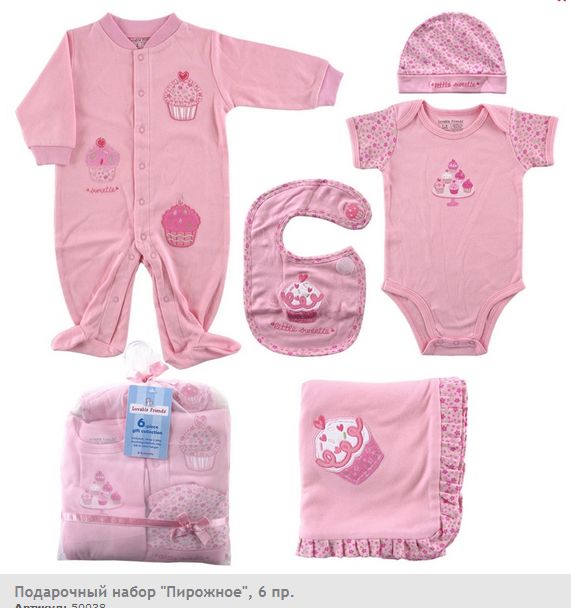 В подарочный набор для девочки "Пирожное" (6 пр.) входит всё самое необходимое для гардероба малышки: комбинезон с длинным рукавом, боди с коротким рукавом, шапочка, пеленальное одеяльце, нагрудник и красивая мягкая вешалка. Удобная одежда, приятный дизайн и достойное качество.