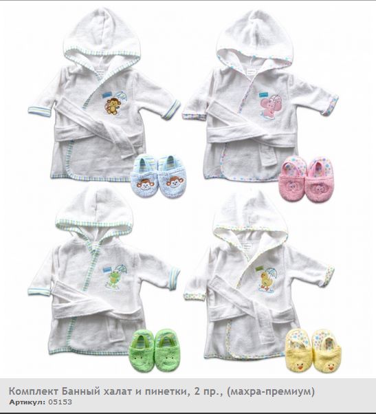 Комплект включает банный махровый халат и пинетки. Изделия украшает вышивка-аппликация. Махровый халатик прекрасно впитывает влагу и оберегает малыша от охлаждения после приёма ванны. Пинетки надёжно фиксируются резинкой, защищают ножки от переохлаждения.