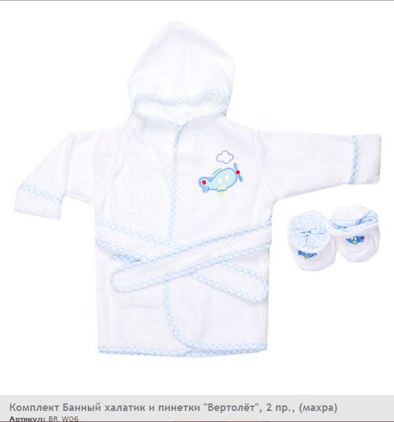 Прекрасный банный комплект для малышей: махровый халатик и тапочки-пинетки. Изготовлены из мягкого хлопка с махровой фактурой, хорошо впитывают влагу и защищают от переохлаждения. Украшены вышивкой-аппликацией.