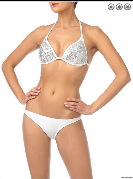 Стильный купальник для вечернего коктейля у бассейна или морской прогулки. Бюст - аккуратные дублированные треугольники с дополнительными корректорами и лёгким эффектом пуш-ап, фиксируется на теле тонкими завязками. Плавки низкой посадки с ультра-узким бочком. Эффектный декор чашек бюста, затянутых в ткань, расшитую пайетками, великолепно сочетается со всеми купальниками коллекции, представляя единую линию купальных костюмов для коктейля.