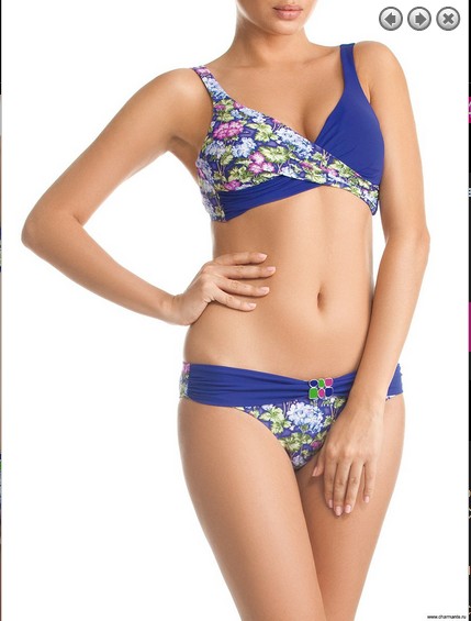 Изысканный дамский купальник-чалма! Бюст - топ сложной драпированной конфигурации с системой подвесных чашечек для идеальной посадки на фигуре. Широкие бретели могут фиксироваться в нескольких положениях благодаря специальным крючкам и петлям на задней детали изделия. Плавки оригинальной конструкции с широким бочком и элегантным драпированным поясом по переду украшены эксклюзивной эмалевой пряжкой. Весь купальник представлен в эффектной композиции фиолет + 'Фиалковое поле' и выполнен из деликатной микрофибры.