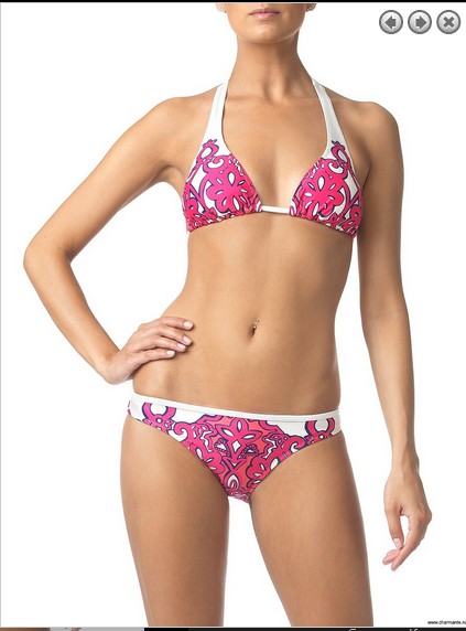 Популярный раздельный купальник. Мягкие подвижные треугольники на элегантных галстучных завязках, плавающие чашечки внутри конструкции позволяют корректировать линии груди. Плавки комфортной, заниженной посадки со средним бочком. Купальник отлично моделируется за счёт удобной конфигурации бюста. Эффектный принт Ар Деко в сочетании контрастных цветов дополняет дизайн модели и подчёркивает винтажный стиль 60 -х.