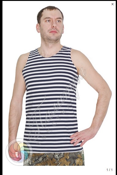 Мужская майка-тельняшка выполнена из вязаного трикотажного полотна, связаного из нитей двух цветов, одинаковая снаружи и внутри ( полосы не набиты, а ввязаны !!!). Каждая майка упакована в полипропиленовый пакет и имеет этикетку, содержащую информацию о правилах стирки и ухода за изделием.